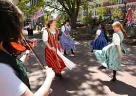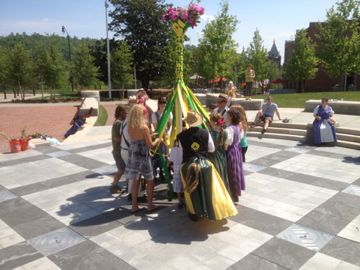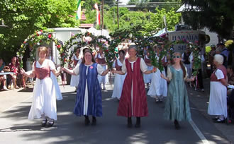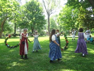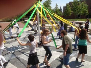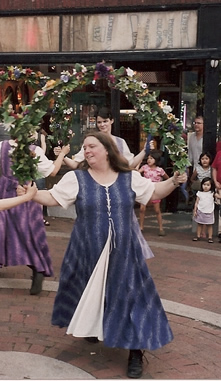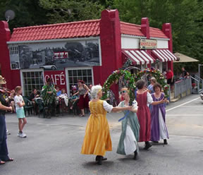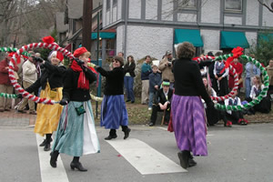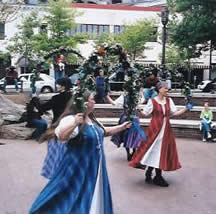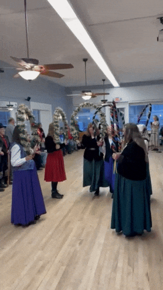 The Ashgrove Garland Dancers of Asheville, North Carolina perform garland, stave, ribbon, and jig dances from several regions of England. We practice during the winter months and present our dances on or around May Day. We dance throughout the spring and summer during evening tours and for special events. Following a late summer break, we practice during autumn and display our dances during the year end holiday season. We often tour with Asheville Morris and together present English country dances.