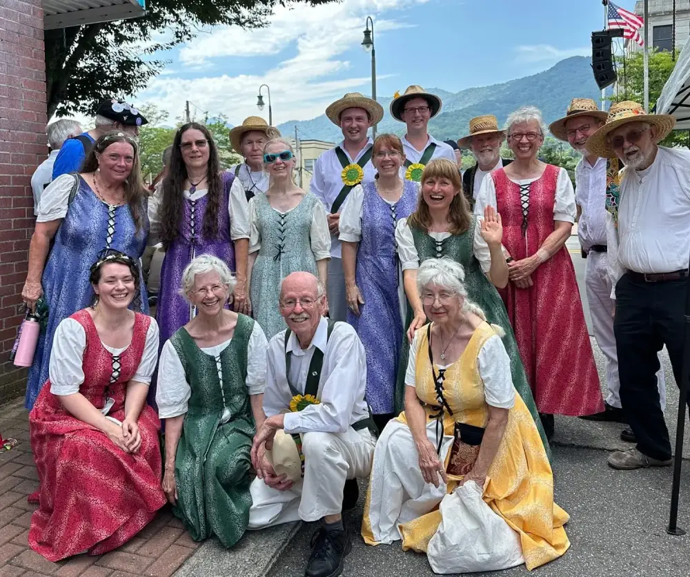 We perform solo and often tour with other Morris groups in the Asheville area and the Morris teams at the John C. Campbell Folk School. We occasionally perform with other dance groups in the US and abroad.